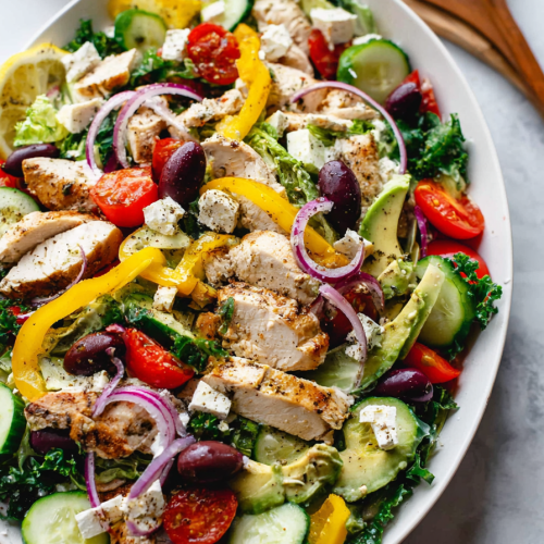 This Greek chicken salad is a nutritional powerhouse. The lean protein from chicken supports muscle health and keeps you satisfied. Olive oil provides healthy monounsaturated fats, while the colorful vegetables deliver essential vitamins, minerals, and antioxidants. The avocado adds creamy texture and additional healthy fats that help with nutrient absorption.