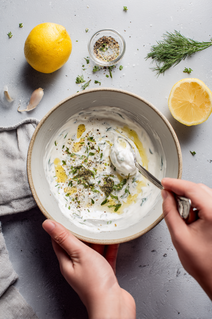 Step 1: Create the Yogurt Sauce In a medium bowl, combine the Greek yogurt, garlic powder, dried oregano, and fresh lemon juice. Whisk until the mixture becomes smooth and creamy. Season with salt and pepper to taste. The sauce should be thick enough to coat the back of a spoon. Set aside while you prepare the other components.