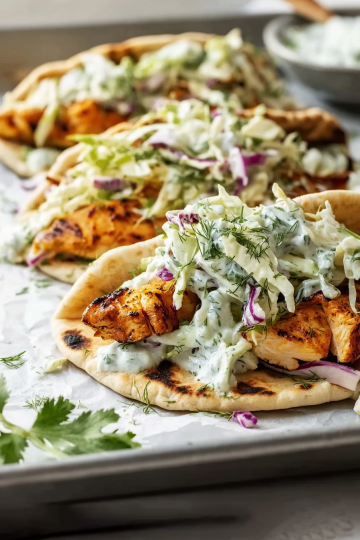 Sheet Pan Chicken Pitas with Herby Ranch Slaw Recipe