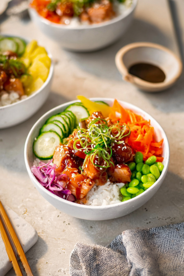 Easy Teriyaki Chicken Poke Bowls Recipe (25 Minutes)